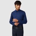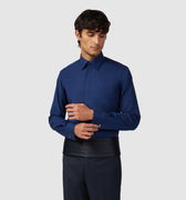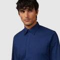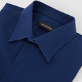 Tailored fit bluette shirt by Carlo Pignatelli, featuring an Italian collar, covered buttoning and square cuffs with a double use button.
