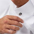 Blue round enamel cufflinks with floral micro pattern, by Carlo Pignatelli.