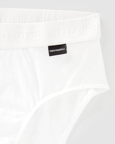 Classic white stretch cotton jersey briefs, elastic featuring Carlo Pignatelli logo.