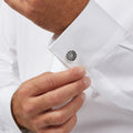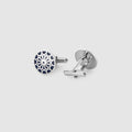 Blue round enamel cufflinks with floral pattern, by Carlo Pignatelli.