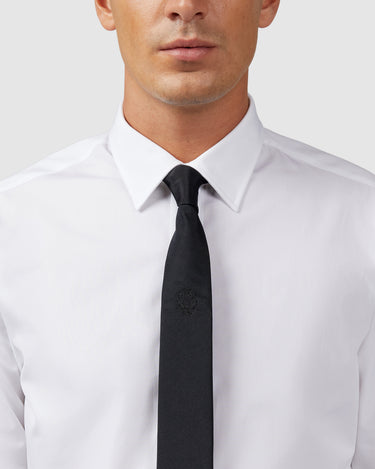 Black silk tie with Carlo Pignatelli logo in jacquard.